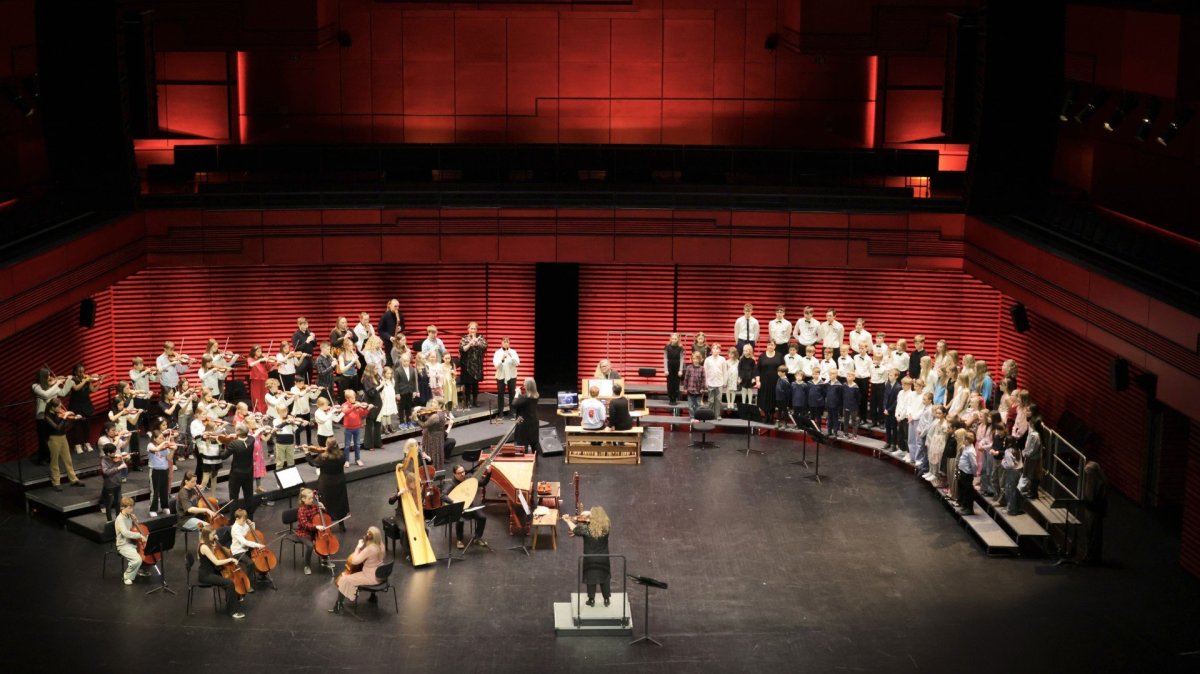 Tónleikarnir voru á vegum Krakkabarokks sem hafði verið hjá okkur í fyrra vor. Þátttakendur voru nemendur nokkurra tónlistarskóla og nokkrir kórar, m.a. líka kór Hvolsskóla, en samtals voru um 150 börn á sviðinu.